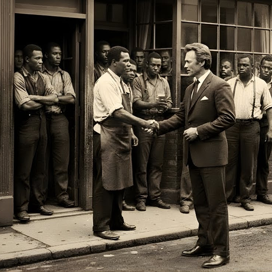 ¿Qué quiere entonces? Un autografo, una foto per il periodico locale con los negros del pueblo. Voglio un hamburger detto Eastwood con una media sonrisa. E voglio pagare la comida de todos los que están aquí. La dichiarazione è stata recibida con un silenzio assoluto. Luego, un hombre mayor, con el rostro surcado de arrugas profundas, habló desde su asiento. Non abbiamo bisogno della nostra carità, signor Eastwood. Podemos pagar nuestra propia comida. Clint ha voluto asentir. Perdere. Non è carità, è un gesto.