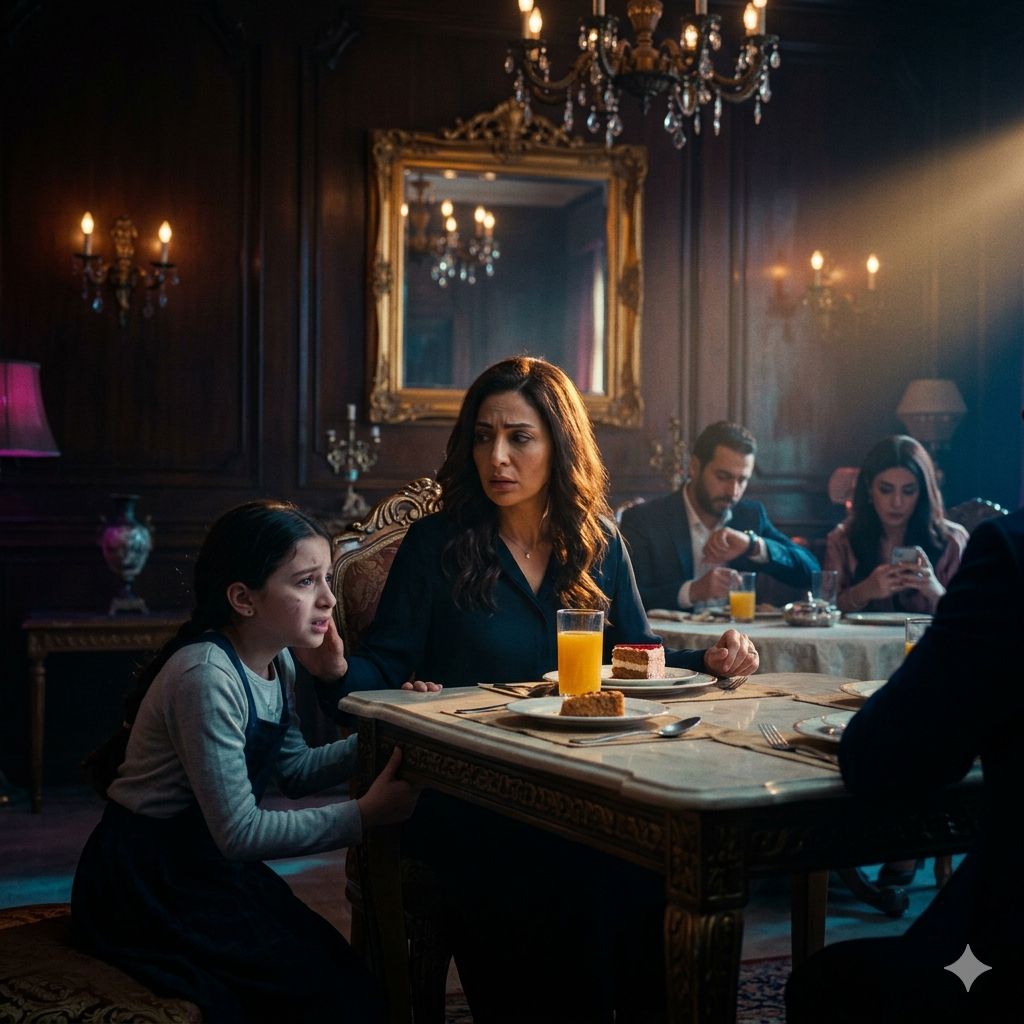 Il ristorante sembrava un palazzo antico, con legno, lampadari e un silenzio tale da farti sentire il battito del tuo cuore. Entrammo io e Layla e tutti gli sguardi si posarono su di noi. Huda si alzò dal suo posto; indossava un completo di seta blu scuro e una collana di perle, e il suo sorriso era perfettamente "disegnato".