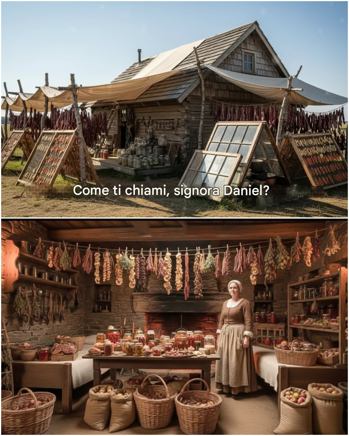 A luglio, il suo cortile sembrava un campo di battaglia dopo un assedio. Teloni di tela tesi tra i rami degli alberi, proteggevano dai raggi più forti le rastrelliere di carne ad asciugare. Cesti di ortaggi a radice giacevano spaccati su delle reti, la cui polpa si scuriva nell'aria di montagna.