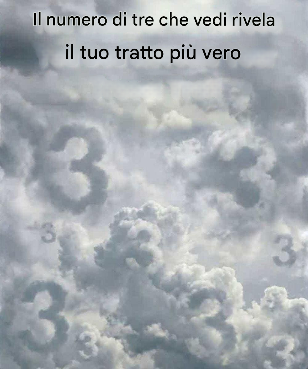 Hai mai notato con quanta rapidità i tuoi occhi si fissano su certi schemi? A volte ciò che vediamo per primo dice di noi più di quanto ci aspettiamo. Nell'immagine qui sopra, il cielo è pieno di soffici nuvole, ma tra di esse si nascondono diversi numeri tre.