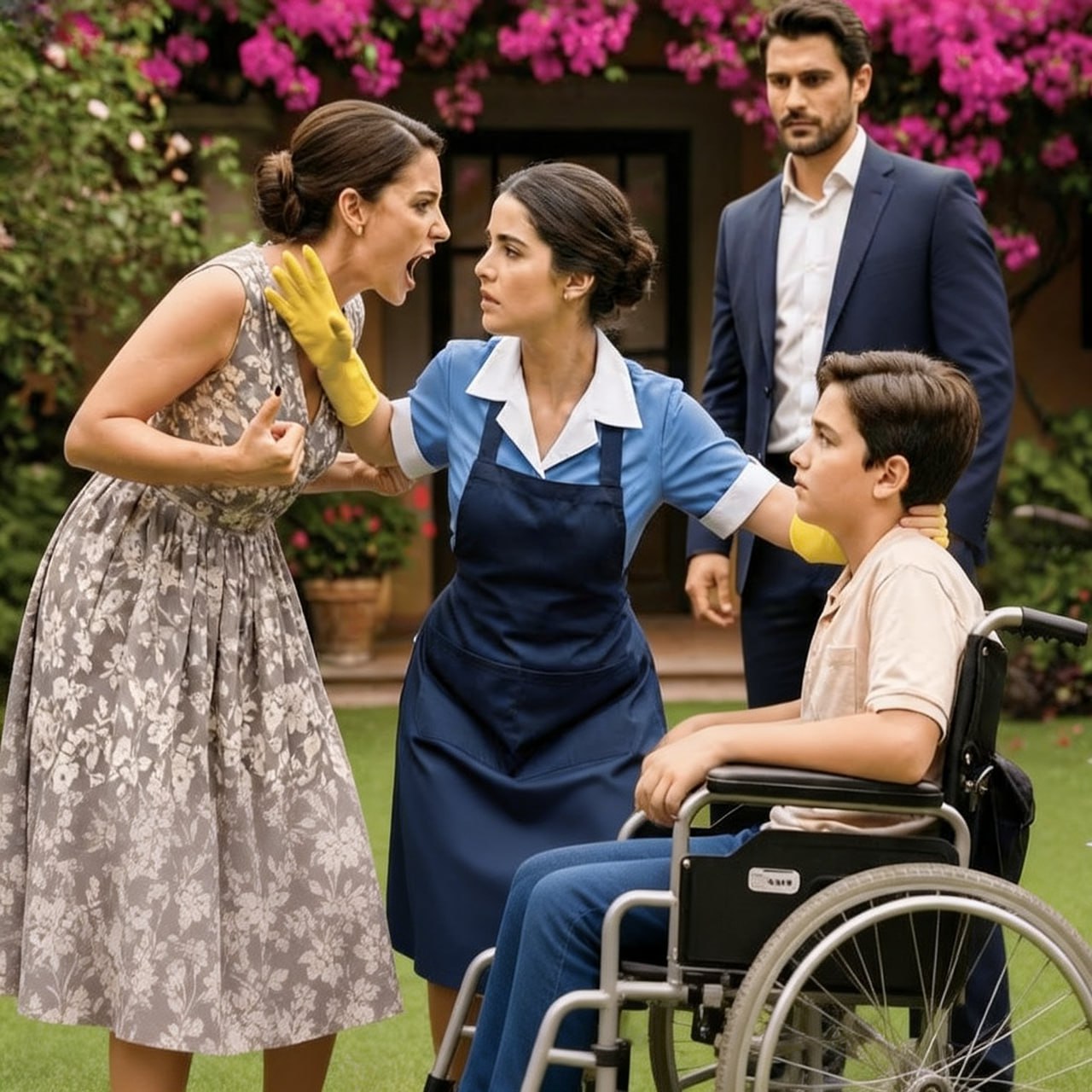 Il milionario scopre la donna delle pulizie che protegge suo figlio disabile e rimane inorridito nel vedere la verità. L'urlo nel giardino. Il grido squarciò la pace del pomeriggio, un suono acuto, isterico e velenoso che fece gelare improvvisamente l'aria tiepida. Non ci fu alcun preavviso, nessuna parola pronunciata prima, solo l'esplosione di violenza all'ombra delle bouganville rosa. "Lascialo andare, lascialo andare subito, selvaggio!" urlò Isabela, il volto distorto da una rabbia che la privò di ogni sua presunta eleganza.