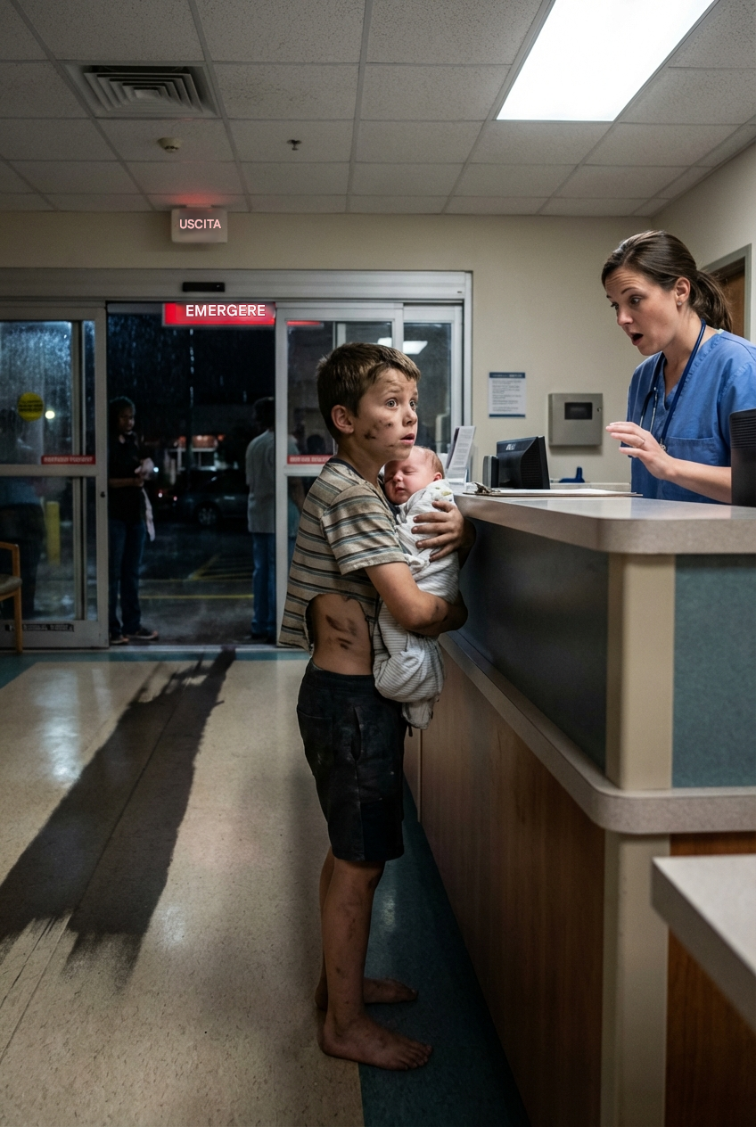Era scalzo. I suoi piedi erano lacerati dalla ghiaia, sanguinavano silenziosamente senza che lui si lamentasse. La sua maglietta gli pendeva addosso come una bandiera di resa che non ebbe mai la possibilità di sventolare. Ma l'infermiera del pronto soccorso, Mara Jennings, si bloccò davvero solo quando vide cosa portava con sé.