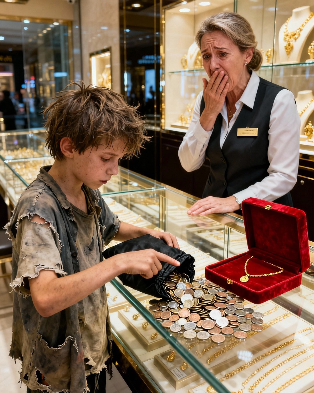 “Questo bambino ha pagato questa collana con qualcosa di molto più prezioso del denaro: con sacrificio, amore e dignità.”